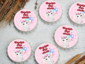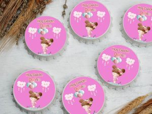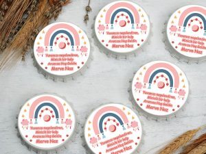 Bulut ve bebek eşyaları temalı yuvarlak açacak magnet