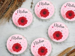 Büyük kırmızı papatya desenli yuvarlak açacak magnet