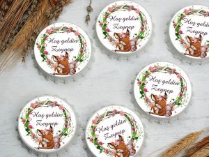 Ceylan tavşan çiçek çerçeveli yuvarlak açacak magnet